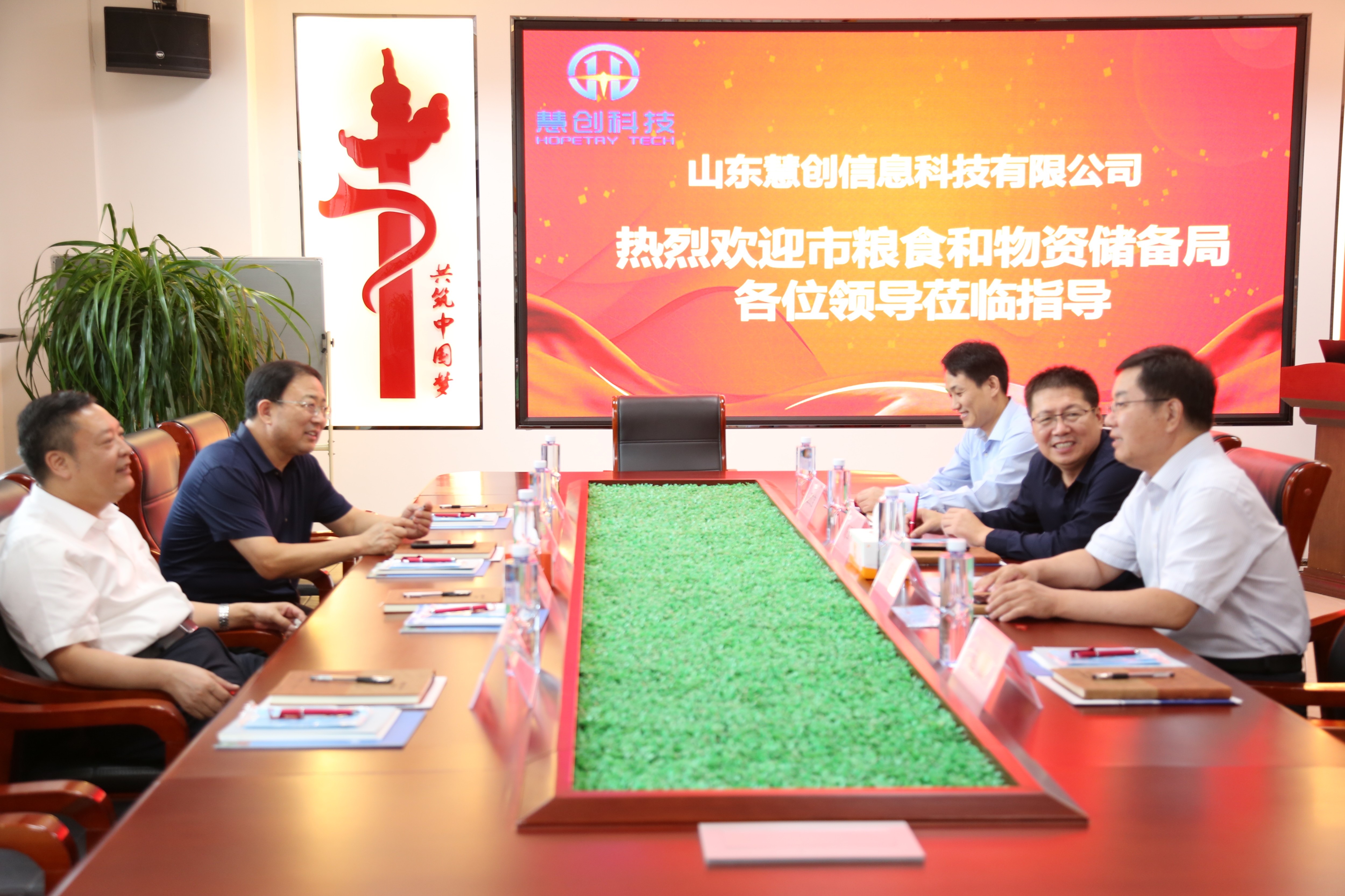 2022年9月27日,臨沂市糧食和物資儲備局黨組書記、局長宋成明;黨組成員、副局長徐景亮及相關領導同志到我司山東慧創(chuàng)信息科技有限公司指導黨建工作。臨沂人才工作集團黨支部書記、總經理高玉彬、市派紅領書記范寶杰等領導同志陪同。座談會上,臨沂人才工作集團黨支部書記、總經理高玉彬就人才集團發(fā)展情況及園區(qū)黨建工作作出詳細解說。 山東慧創(chuàng)信息科技有限公司董事長王立寶就企業(yè)業(yè)務、企業(yè)黨建、企業(yè)